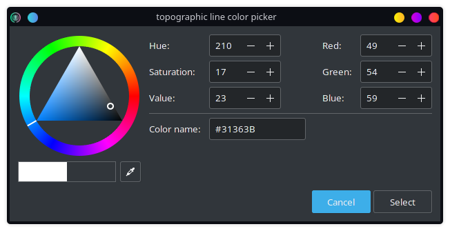 La première étape consiste à extraire les ligne topographique de l'image pour pouvoir les traiter. Nous avons opté pour un filtrage par couleur car les lignes sont généralemnt facilement discernable. Pour enrichir le rendu final, les autres informations telles que les rivières ou les routes sont aussi extraites dans d'autres images à part.